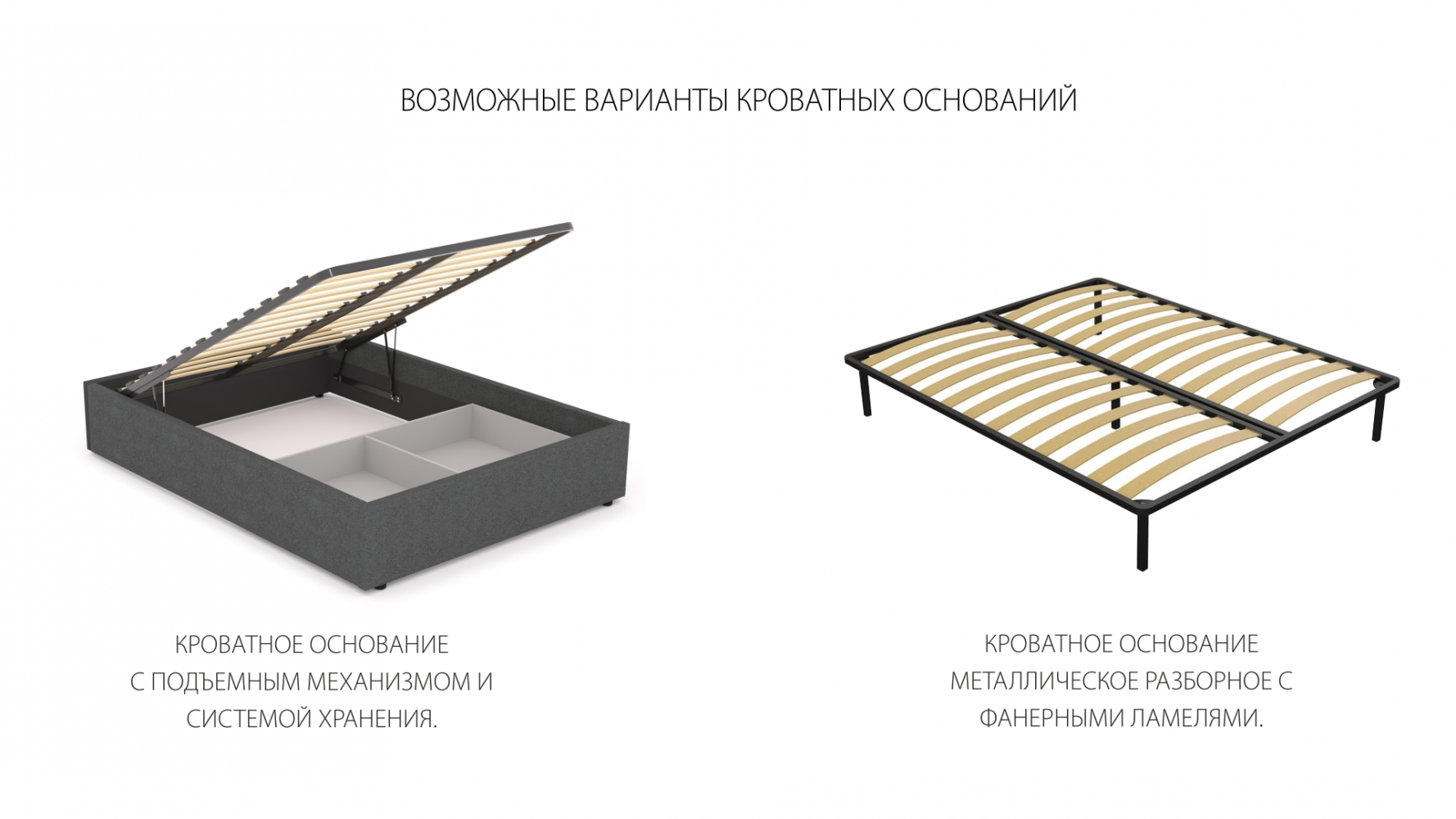 Кроватное основание с подъёмным механизмом и системой хранения.